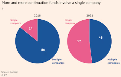 On PE, FT has a long read highlighting the increasing importance of continuation funds, or the practice of PE funds selling stakes in their firms to themselves. This has remarkable similarities with the classic Ponzi schemes.